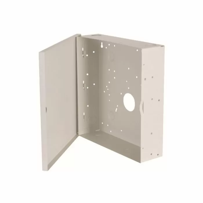 Gabinete grande con perforaciones para instalar en superficie, ideal para los paneles de alarma de la serie power y neo, capacidad para alojar panel y hasta tres módulos más.