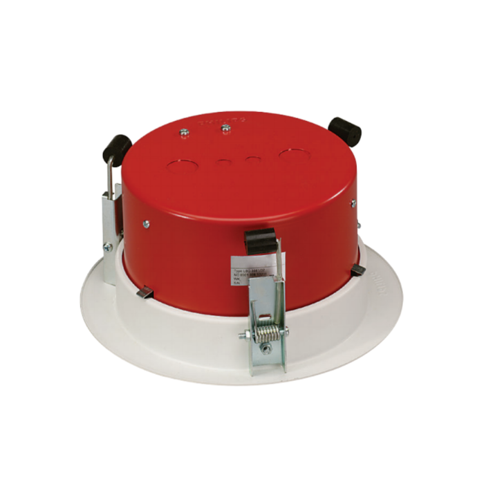 Durante un incendio, el falso techo en el que están instalados los altavoces puede permitir que las llamas se extiendan por un edificio. Para evitar que el fuego entre en el falso techo a través del altavoz, el altavoz de montaje en techo puede incluir una cúpula ignífuga (LBC 3081/02).