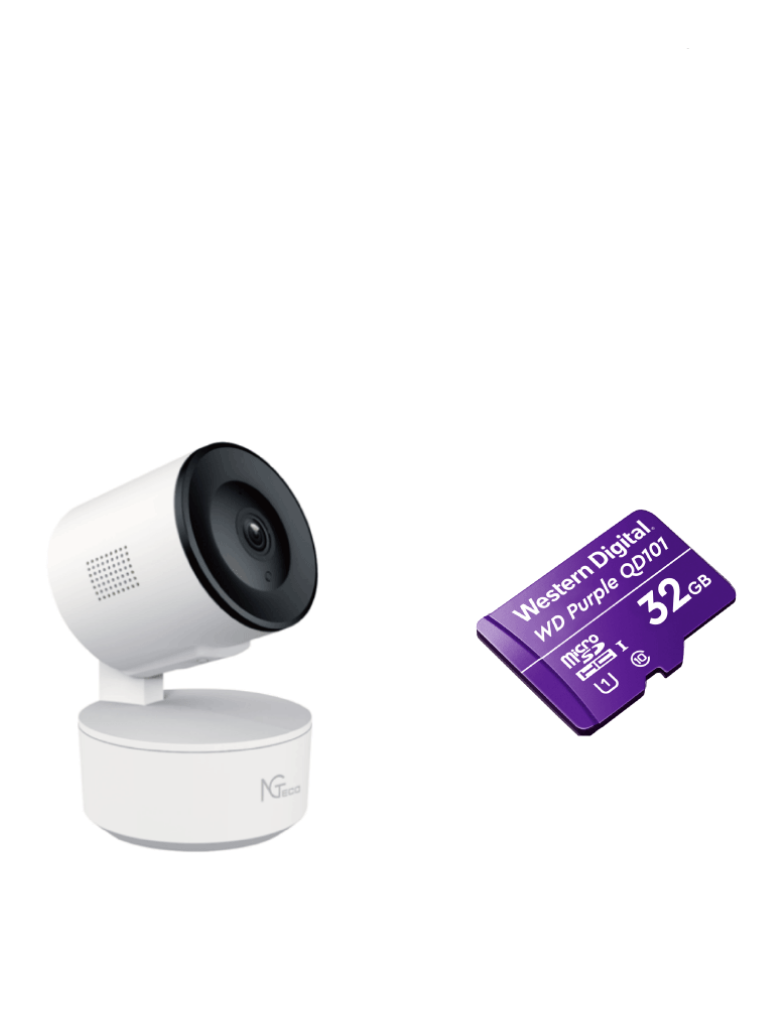NGTECO NGC2301PAK - Paquete de Cámara NGC2301 IP WiFi 1080P con Memoria de 32GB Micro SDHC/ Linea Purple/ Clase 10 U1