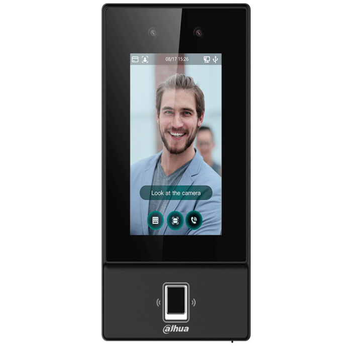 DHI-ASI6214S-D Control de acceso con reconocimiento facial/ Pantalla de 4.3 Pulgadas/ Cámara 2 MP/ 6.000 usuarios/ 6.000 rostros/ 6.000 contraseñas/ 6.000 huellas dactilares