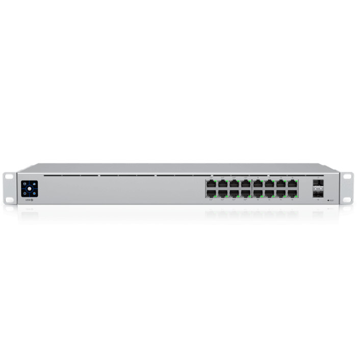 UBIQUITI USW-16-POE - Switch Capa 2 de 16 Puertos/ 8 Puertos PoE 802.3af&at y 8 Puertos Gigabit sin PoE/ 2 Puertos 1Gbps SFP/ Presupuesto PoE de Hasta 42W/ Pantalla Informativa