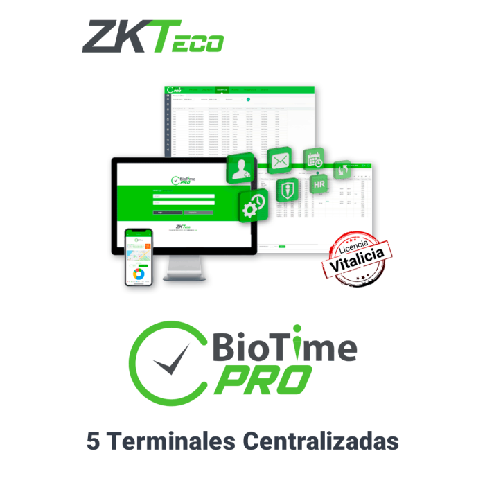 ZKTECO BIOTIMEPROSTARTER- Licencia de Asistencia Vitalicia / Versión WEB / Para 5 Terminales Centralizadas / 500 Empleados / 1 Punto para App / 1 Multicompañia