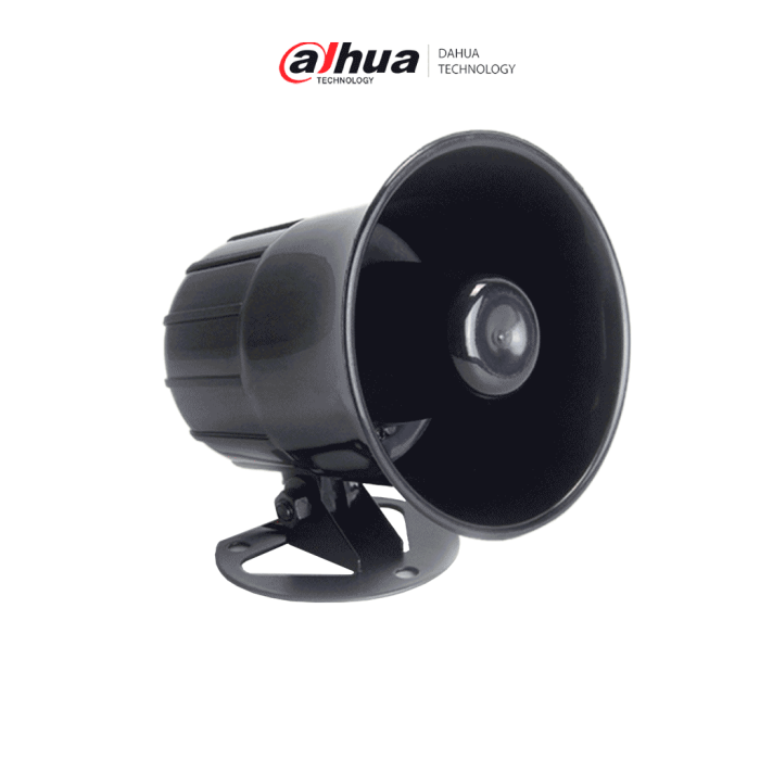DAHUA DH-ARA16 - Sirena Exterior con alerta potente de 105 dB para mayor seguridad. De diseño robusto en plástico ABS negro, con una alimentación de 12V DC, ideal para proteger cualquier entorno.