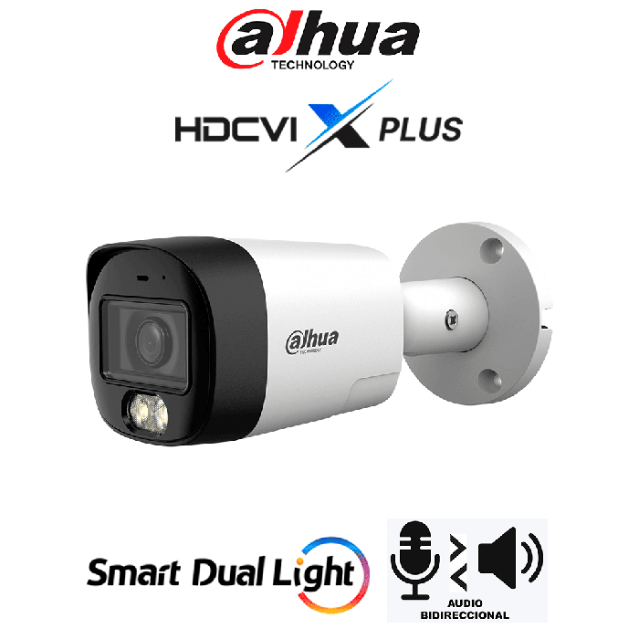 DAHUA DH-HAC-HFW1200RMN-IL-T - Cámara Bullet de 2 MP/ HDCVI X PLUS/ Audio Bidireccional/ Iluminación Dual Inteligente Hasta 30m/ Iluminación Mediante IR & Luz Cálida/ Reducción de Ruido 3D NR/ Metálica