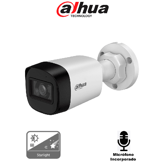 DAHUA d - Cámara Bullet Full Color 5 MP/ Lente de 3.6 mm y Micrófono Integrado/ Visión Nocturna Hasta 50 mts/ WDR Real de 120 dB y Color 24 Horas/ IP67/ Tecnología Starlight Anterior