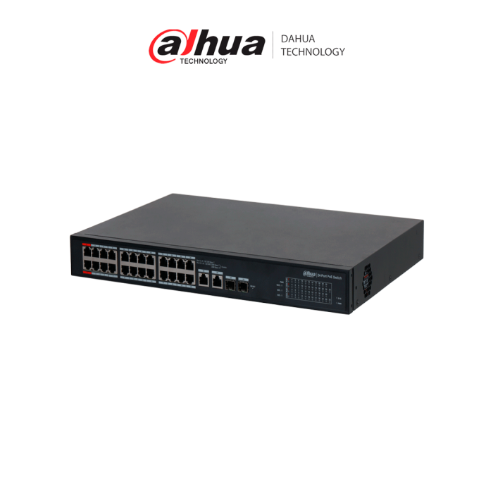DAHUA DH-S4101-24ET2GF-360-C Switch Administrado en la nube de 26 puertos/ 24 puertos PoE/ larga distancia de 250 m/ PoE watchdog / 10/100 Mbps/ Poe 2.0/ 8.8 Gbps/