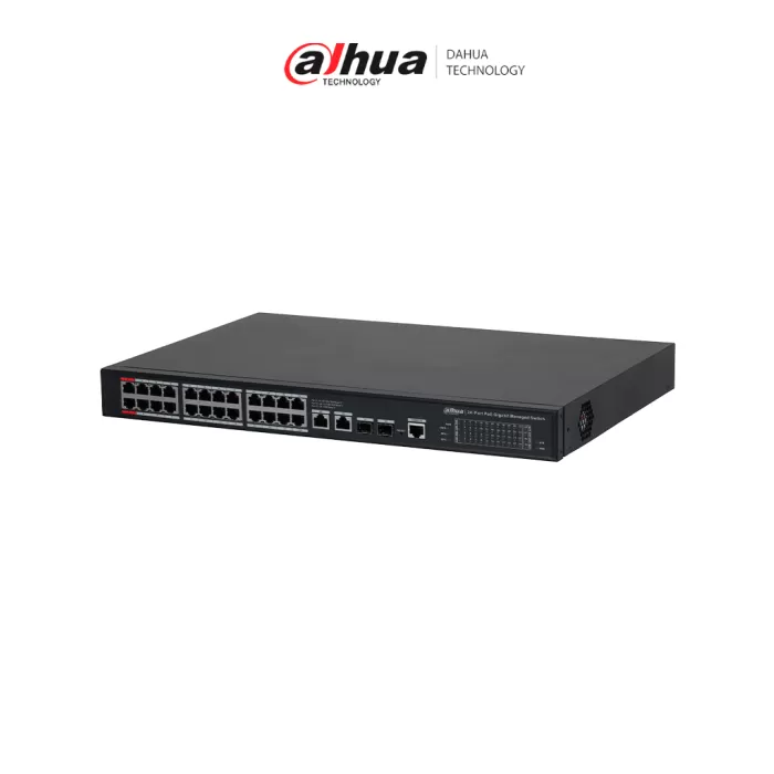 DAHUA DH-S4228-24GT-240 Switch PoE Gigabit Administrable con 24 puertos PoE, ideal para transmisión de larga distancia (hasta 250 m), perfecto para redes de Capa 2