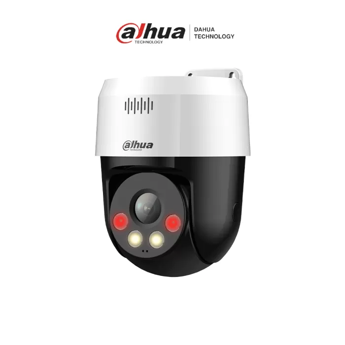 DAHUA DH-SD2A300NB-GNY-A-PV-0400 - Cámara IP PT de 3 MP con Full Color y Disuasión Activa, iluminador dual inteligente, lente fijo, alcance de 30m con IR y luz visible, audio bidireccional, protección IP66, PoE y ranura para microSD./#LoNuevo