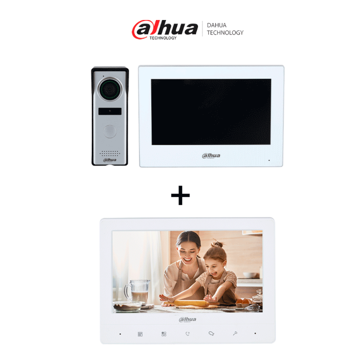 DAHUA DHI-KTH01+DHI-VTH1020J - Kit de Videopotero Hibrido + Frente de Calle Analogico con Camara de 1.3 MP + DAHUA VTH1020J- Monitor analógico de 7 pulgadas compatible con KTA01 / KTA02 / #VDP