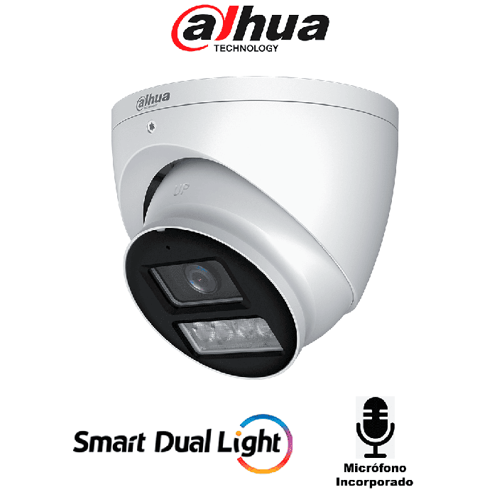 DAHUA HAC-HDW1239TN-IL-A-S3 - Camara Domo de 2 Megapixeles/ Iluminador Dual Inteligente+Full Color/ Lente de 2.8 mm/ 107 Grados/ Microfono Integrado/ WDR Real de 130 dB/ 40 Metros de Iluminación IR y Visible/ IP67/