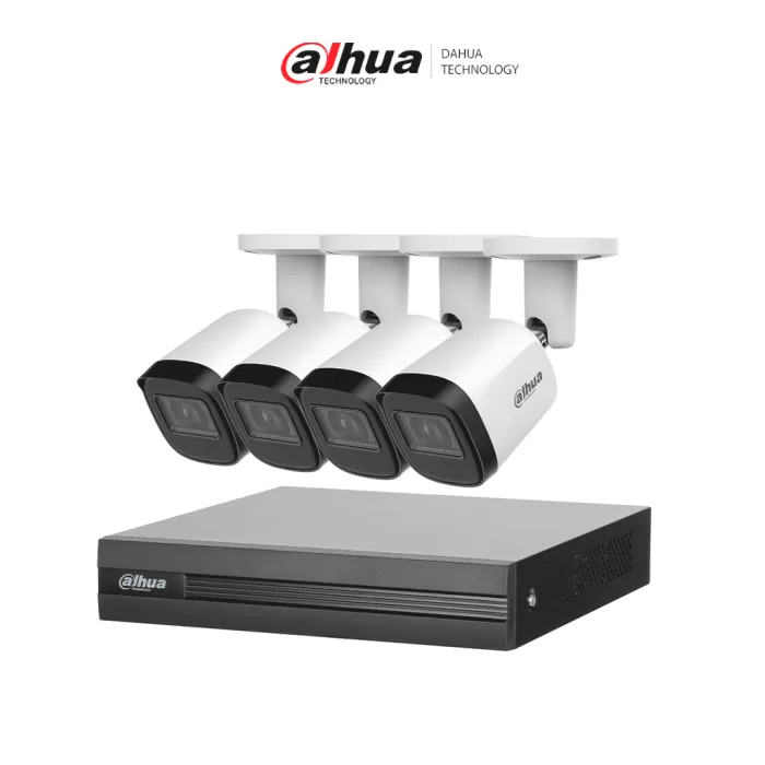 DAHUA KITXVR5104HS4KLI3+4HFW1500CMA- Kit de vigilancia de 4 canales 5 MP con audio y DVR WizSense con reconocimiento facial y H.265+. Soporta 4 canales + 4 IP o hasta 8 IP. Incluye 4 canales SMD Plus para búsqueda de humanos y vehículos Anterior