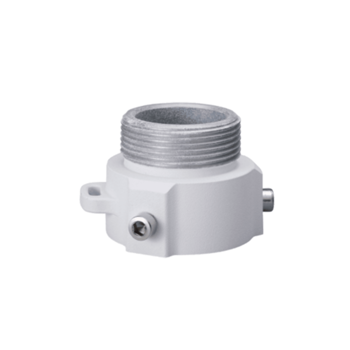 El modelo PFA111 es un adaptador para brazo de pared diseñado en aluminio, también puede utilizarse como montaje de techo para cámaras PTZ Dahua, las dimensiones del equipo son Φ60mm x 49mm, con un peso de 0.25kg el cual puede soportar un peso máximo de 7kg, esta diseñado para funcionar en temperaturas de -40°C ~ 60°C, otro detalle a destacar es que este adaptador nos permite realizar una instalación mucho más sencilla debido a que puede sostener el peso de la cámara PTZ mientras es instalada.