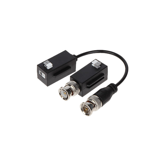 Balun de video pasivo para 1 canal, transmisión en tiempo real por cable UTP CAT5E/6, pasivo, sin necesidad de alimentación, excelentes capacidades anti-trueno, anti-estáticas y anti-interferencias, formatos compatibles: HDCVI/TVI/AHD/CVBS; con conector BNC hembra y conexiones de terminales de cable tipo presión.