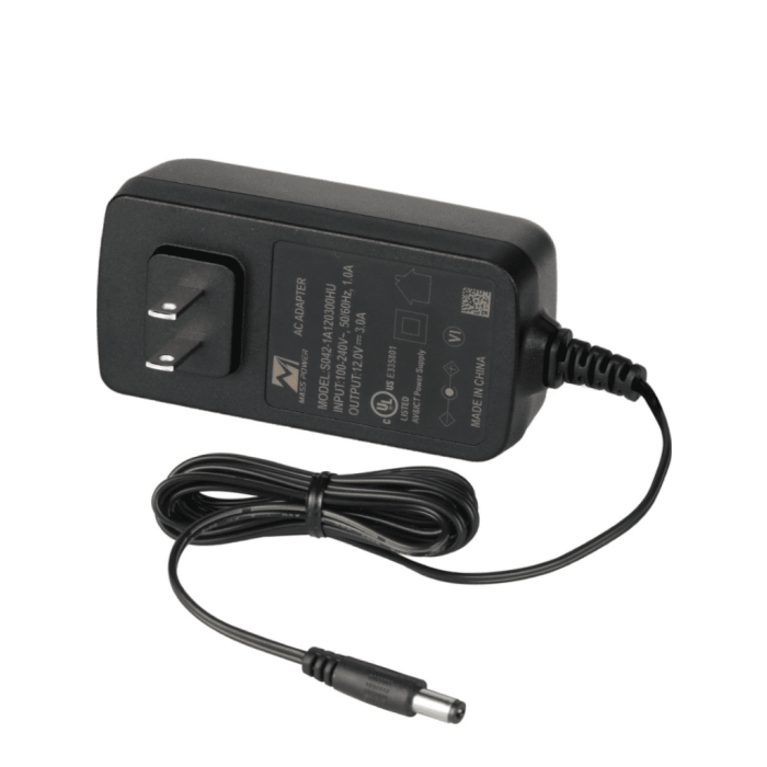 Fuente de poder de 12VCD a 3A con un amplio rango de voltaje de entrada de 90 ~ 264 Vac, cumple con los requisitos en diferentes partes para la fluctuación de la red eléctrica