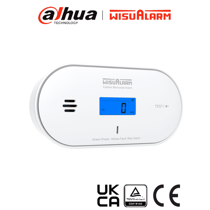 DAHUA WISUALARM DHI-HY-GC30A - Detector de monóxido de carbono (CO) autónomo, Mide temperatura y humedad, Batería de 10 años, Pantalla informativa y luces indicadoras, Alarma de 85 dB, Certificaciones TÜV, CE y UKCA, #LoNuevo #Wisualarm