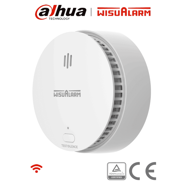 DAHUA WISUALARM HY-SA2FA - Detector Inteligente de Humo WiFi 2.4 Ghz, Sensor Fotoeléctrico, Sonido de Alarma de 85dB, Alarma Visual y Audible, Envía Notificaciones en Tiempo Real a APP, Certificaciones TÜV and CE,