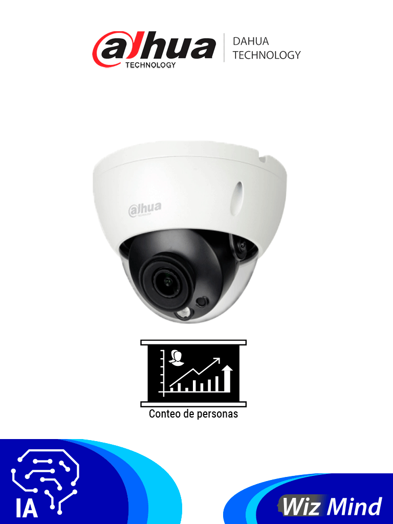 DAHUA IPC-HDBW5442RN-S-0280B - Cámara IP Domo Antivandálica Resolución de 4 MP/ Lente 2.8 mm/ ∢ 113°/ IR 50 mts/ IA WizMind/ Detección Facial/ Protección Perimetral/ Conteo de Personas/ Starlight/ PoE/ WDR 140dB/ H.265/ IP67/ IK10/