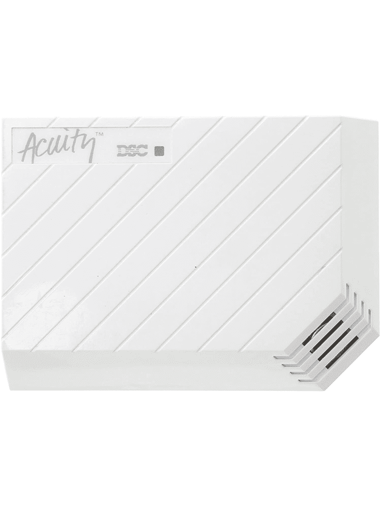 Los detectores de rotura de cristales Acuity cuentan con suficiente “inteligencia” para poder diferenciar el sonido de la rotura de un cristal de los demás sonidos comunes del hogar o del negocio, los detectores tienen micrófonos de gran rendimiento y un avanzado análisis digital de sonido (DSA, por sus siglas en inglés), basado en micro procesadores, que pueden determinar la rotura de todo tipo de cristal en marcado (en placas,flotante, templado, con mallas de alambre y laminado)hasta una distancia de 25 pies.