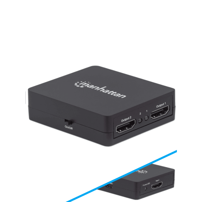 MANHATTAN 207652 - Splitter / Divisor de Video HDMI/ FullHD/ 1 Entrada y 2 Salidas/ Distancia de Entrada 15 Metros/ Distancia de Salidas 15 Metros/ Soporta Conexión en Cascada/ Soporta sonido LPCM, Sonido Master DTS-HD y Dolby TrueHD/