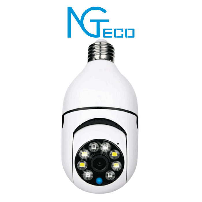 NGTECO NGSH01C2IN - Foco con Cámara Inteligente WiFi / 2MP / Visión PTZ 355° / Lente HD 4mm / Visión Nocturna IR + Luz Blanca / Audio 2 Vias / Almacenamiento Local y en la Nube / Onvif / Compatible con Alexa y Asistente de Google