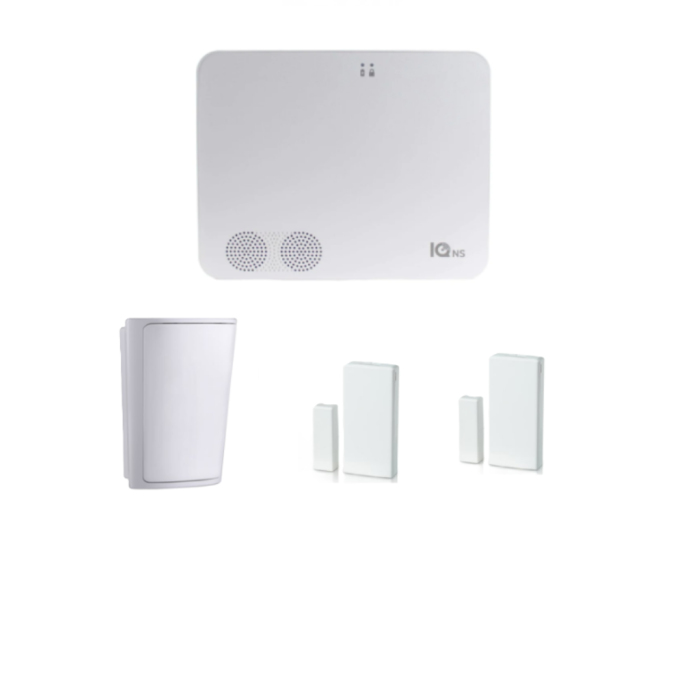 QOLSYS IQNS PACK - Paquete que contiene Sistema de Alarma IQ NS autocontenido sin pantalla, Power G 915 Mhz 1 sensor PIR inalámbrico PG9914 y 2 sensores magnéticos inalámbricos PG9303