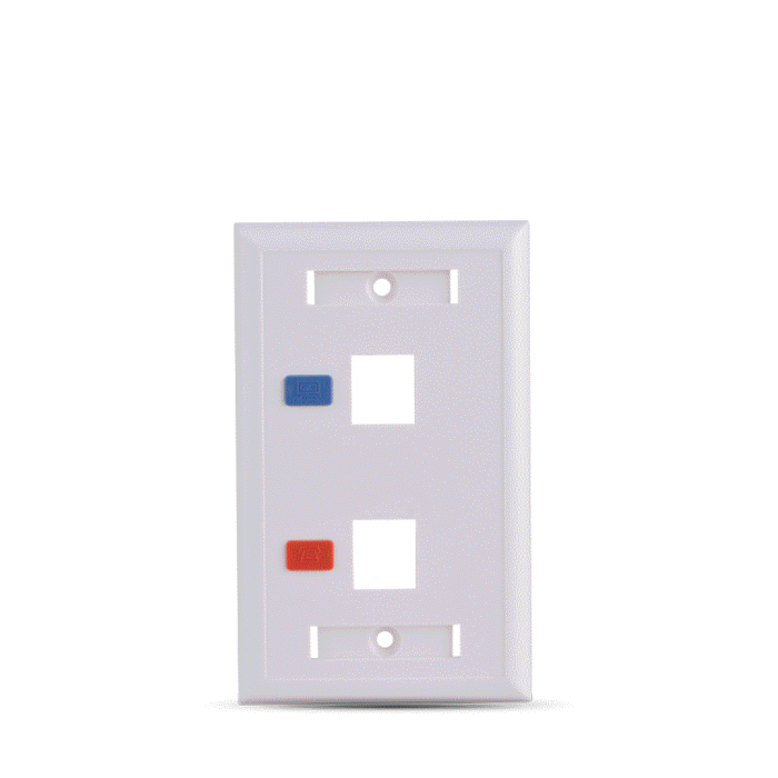 SAXXON A1752E - Placa de pared / Vertical / 2 Puertos tipo keystone / Color blanco / Con etiquetas