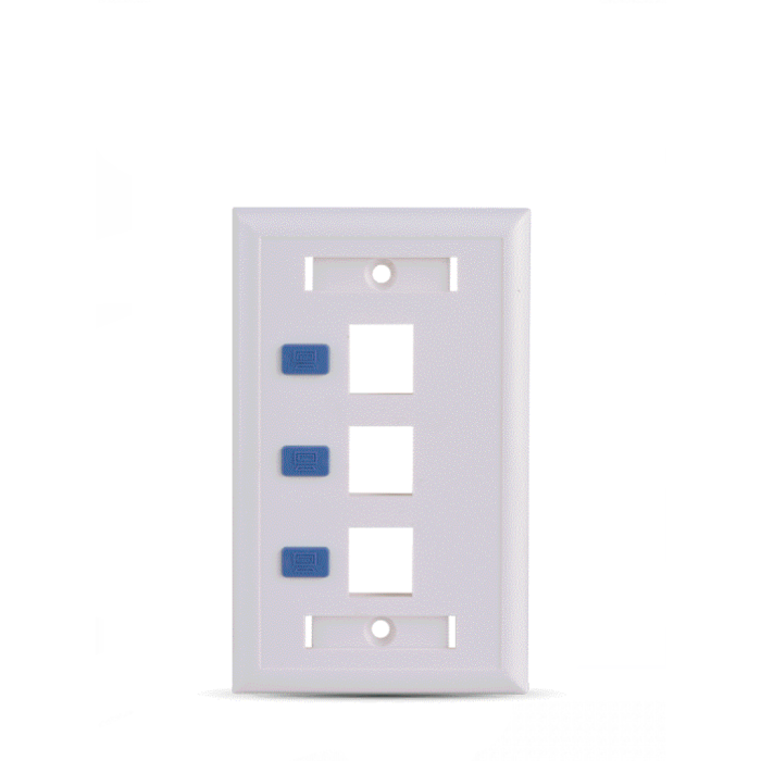 SAXXON A1753E - Placa de pared / Vertical / 3 Puertos tipo keystone / Color blanco / Con etiquetas