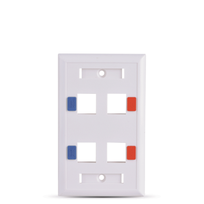 SAXXON A1754E - Placa de pared / Vertical / 4 Puertos tipo keystone / Color blanco / Con etiquetas