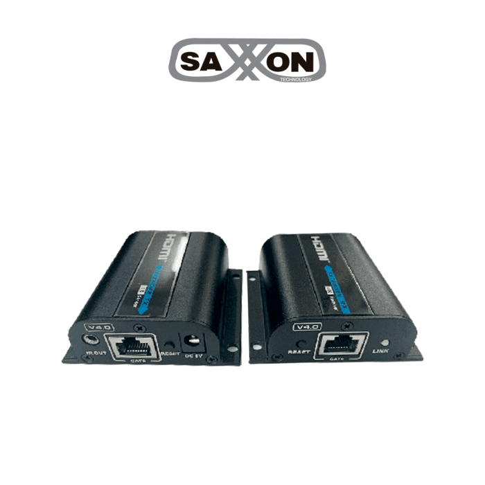 SAXXON LKV372PRO-4.0 - Kit extensor de video HDMI/ Resolucion 4K/ CAT 6/ 6A Cobre / PoC/ Hasta 50 metros/ Loop HDMI en transmisor/ Transmisor IR/ Plug and play/ Solo se Energiza el Transmisor