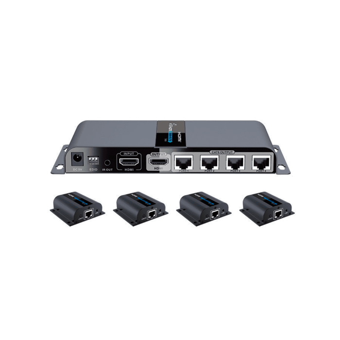 SAXXON LKV714PRO- Kit Extensor HDMI de 4 Puertos/ Resolucion 1080p/ Hasta 40 metros/ Cat 6/ 6A/ 7/ Loop HDMI/ Transmisor IR/ Plug and play
