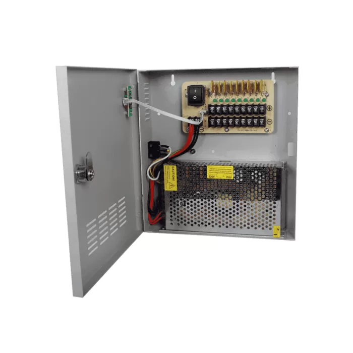 La fuente modelo PSU12V20A9C mas que una fuente es un distribuidor de energía centralizado con carcasa de metal robusta con ranuras para su ventilación sin dejar a un lado la estética, la caja tiene protección anti estática y anti-interferencia, alimenta 9 cámaras de cctv con indicador de salida LED individual proporcionando la tensión de salida de 12V AC, cada salida está protegida de forma independiente por un fusible de cerámica o PTC que protege nuestras cámaras.