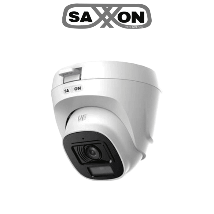 SAXXON SUA-HAC-T20P-0280B- Cámara Turret de 2 Megapíxeles/ Lente de 2.8 mm con Visión de Apertura de Hasta 100°/ Policarbonato/ IR de Hasta 20m de Visualización/ Fácil Instalación/ Ideal para Interiores #SAXI