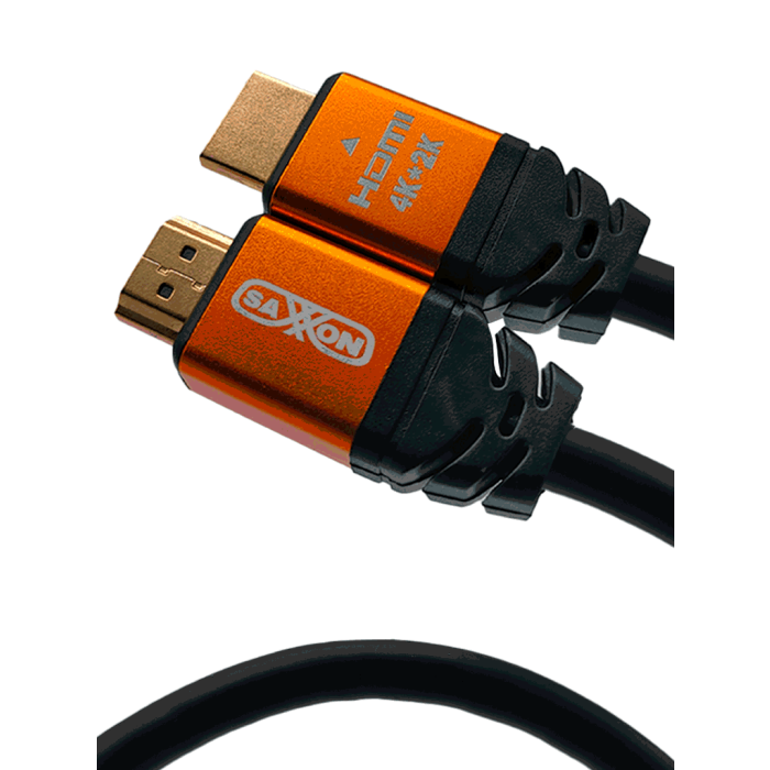 SAXXON SX015HDC - Cable HDMI de 1.5 metros de alta velocidad / Versión 2.0 / Resolución 4K / Canal de retorno de audio (ARC) / Video 3D / Blindado para reducir interferencias / Chapado en oro / Alta resistencia y durabilidad.