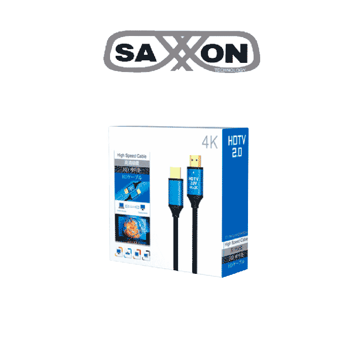 SAXXON SX030HDC - Cable HDMI de 3 metros de alta velocidad / Versión 2.0 / Resolución 4K / Canal de retorno de audio (ARC) / Video 3D / Blindado para reducir interferencias / Chapado en oro / Alta resistencia y durabilidad. Siguiente