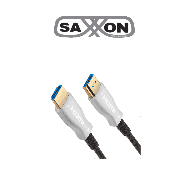 SAXXON SX30HDFO47 Cable HDMI de 30 Metros por Fibra Óptica 4K@60Hz / Fibra 4 hilos + 7 hilos cobre estañado / Compatible con HDMI 2.0 / Alta velocidad 18 Gbps / 3D / HDR / Caja de Aleación de Zinc / Premium