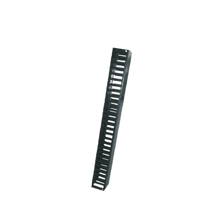 El modelo SBE-OV2URS, es un organizador de cables en forma vertical para rack, diseñado en plástico para evitar la interferencia entre metales y los hilos de los cables.