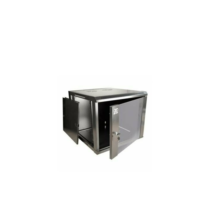 SBE-GNLPAR12URP, Gabinete de pared de 19", 600mm de ancho, 600 mm de profundidad y 12UR . Características: Puerta con cristal templado, 2 adecuaciones para ventiladores en la parte superior, paredes desmontables, accesos para cable.