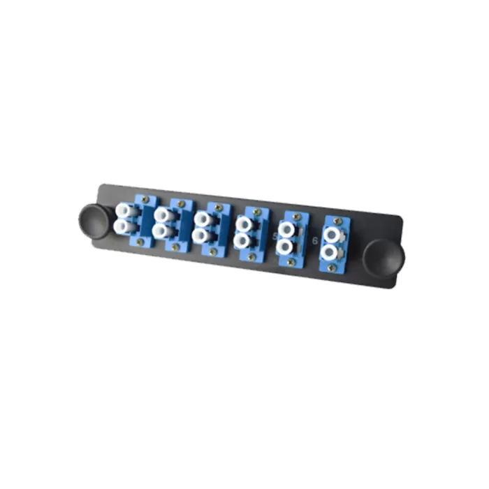Placa con 6 acopladores LC dúplex monomodo para distribuidor de fibra óptica, compatible con cualquier DFO de SBE TECH, de rápida instalación , facilita el trabajo de la organización y distribución de la fibra