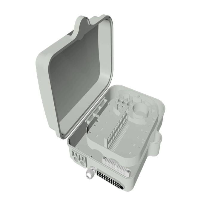 La caja de terminación de acceso a fibra puede contener hasta 24 suscriptores. Se utiliza como punto final para el cable de alimentación para conectar con cable de bajada en el sistema de red FTTx. Integra empalme, división, distribución, almacenamiento y conexión de cables de fibra en un solo sólido.