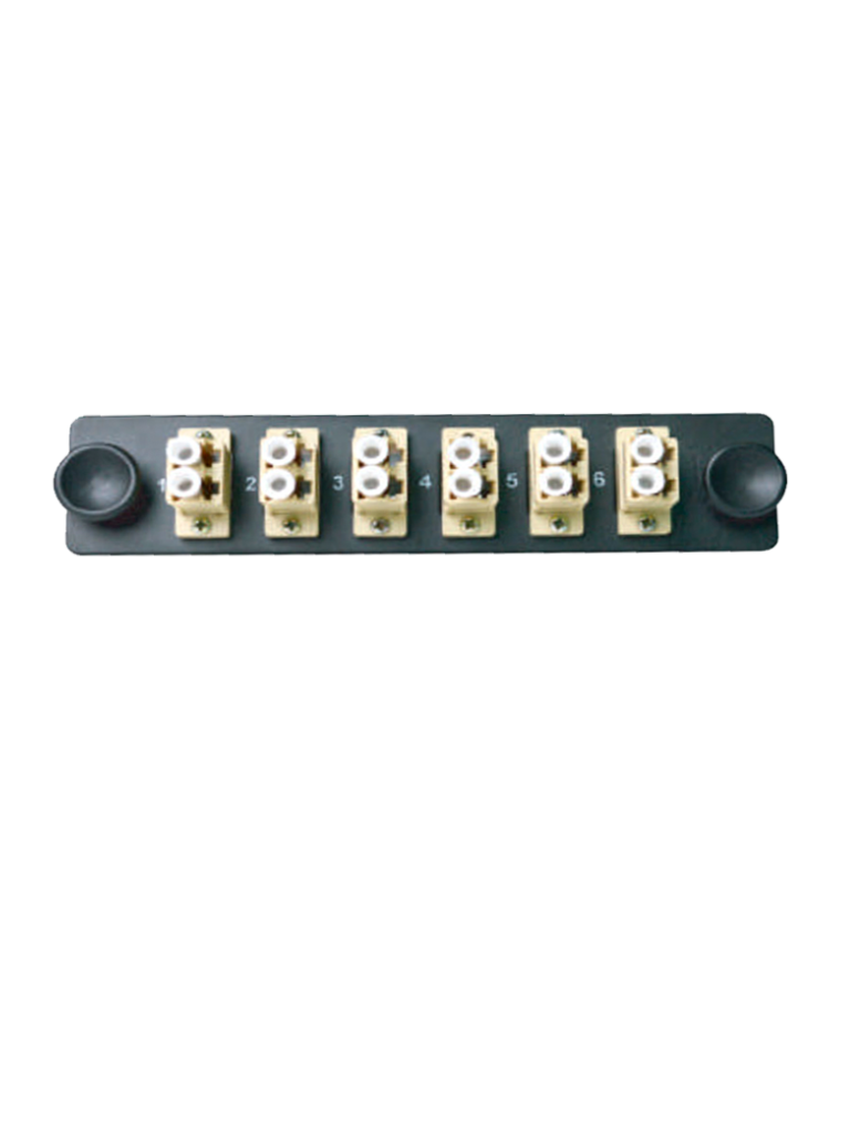 Placa con 6 acopladores LC dúplex multimodo para distribuidor de fibra óptica, compatible con cualquier DFO de SBE TECH, de rápida instalación , facilita el trabajo de la organización y distribución de la fibra