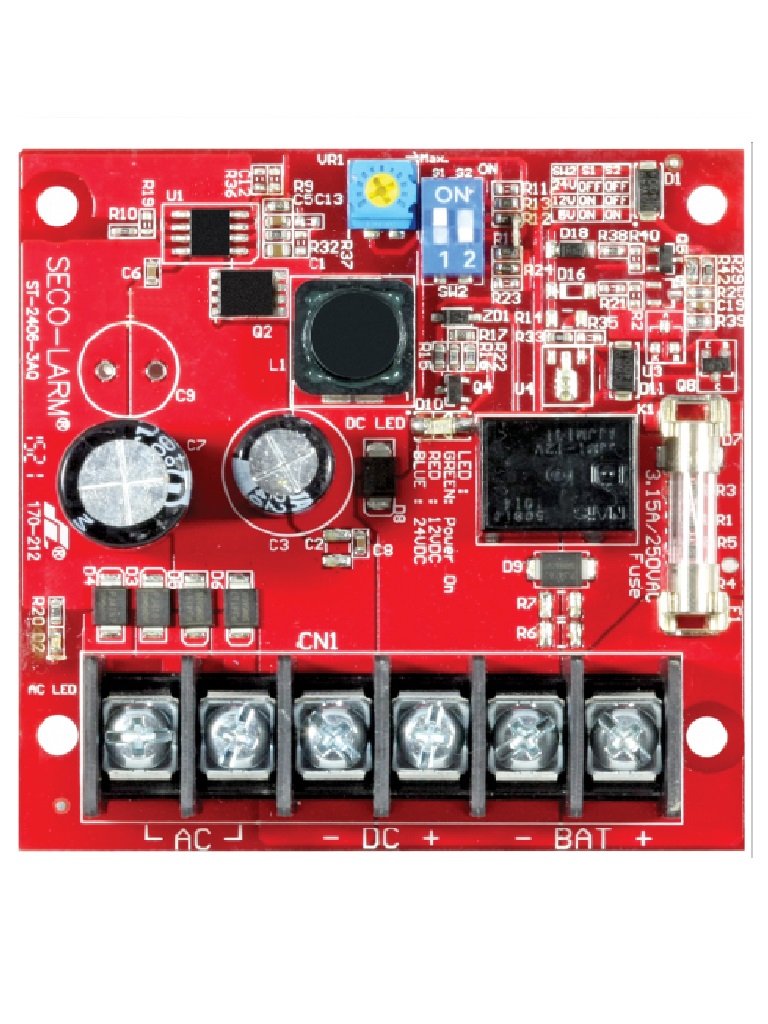 SECO-LARM ST24063AQ - Fuente de Poder con Cargador Bateria 2.5 amp 6/12/24 VCD