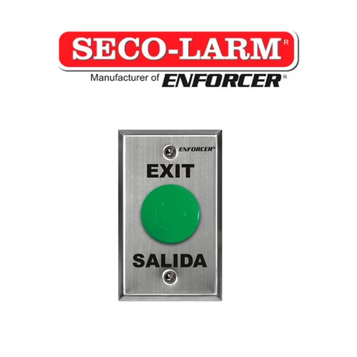 Seco-Larm SD7201GCPE1Q - Placa Con Botón Para Presionar De Color Verde De Salida. "Exit" y "Salida," SPDT