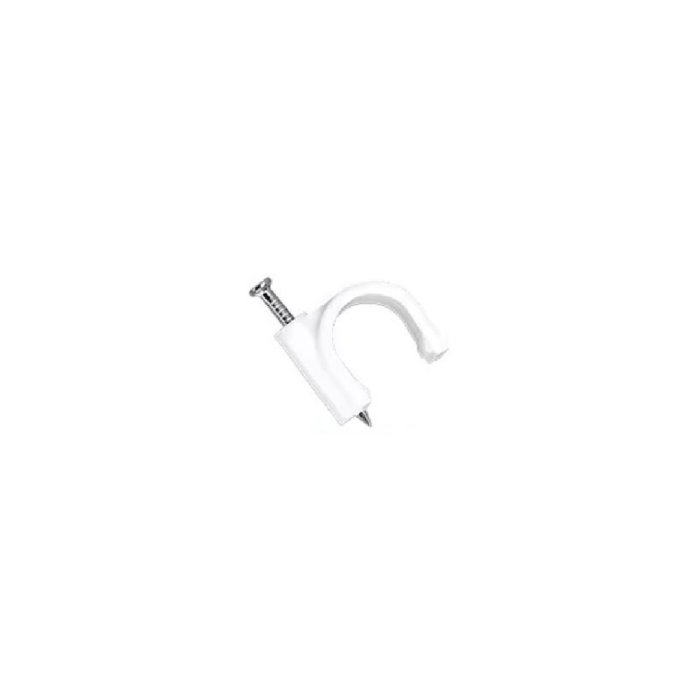 Grapa para cable redondo de 6mm, sujeta los cables en muros y techos de diversas instalaciones de audio o video. Su cuerpo es de plástico blanco resistente y tiene un clavo integrado que es de metal resistente a la corrosión. El empaque contiene 50 piezas y para colocarlos sólo se necesita un martillo para fijar las grapas.