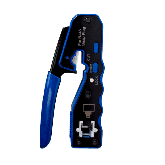 Engarzador RJ45 todo en uno para pelar, engarzar y cortar cables para cables de datos de conductores pares. Ideal para enchufes modulares de 8 posiciones, como conectores CAT5e, CAT6 y CAT6a.