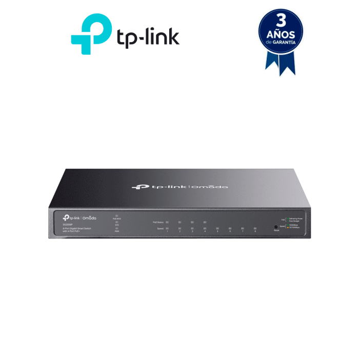 Es un switch administrable que permite gestionar y optimizar redes mediante la configuración avanzada de puertos y políticas. Con 8 puertos Gigabit Ethernet y 4 puertos PoE, facilita la conexión y alimentación de dispositivos como cámaras IP y puntos de acceso a través de un solo cable. Su integración con OMADA SDN permite una gestión centralizada de toda la red, mejorando el control y la eficiencia. Además, ofrece funciones de seguridad avanzadas, como autenticación y protección contra ataques, y soporta VLANs para segmentar el tráfico y mejorar el rendimiento. Ideal para empresas que necesitan fiabilidad, escalabilidad y facilidad de gestión.