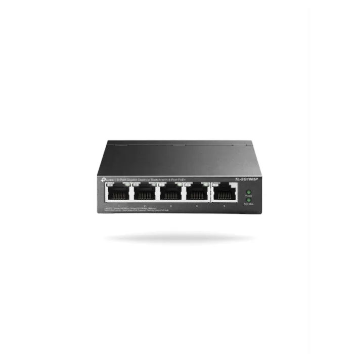 TP-LINK TL-SG1005P - Switch Escritorio No Administrable de 5 puertos 10/100/1000 Mbps , Con 4 puertos PoE 802.3af/at de hasta 65 W , PoE Extendido hasta 250 metros.