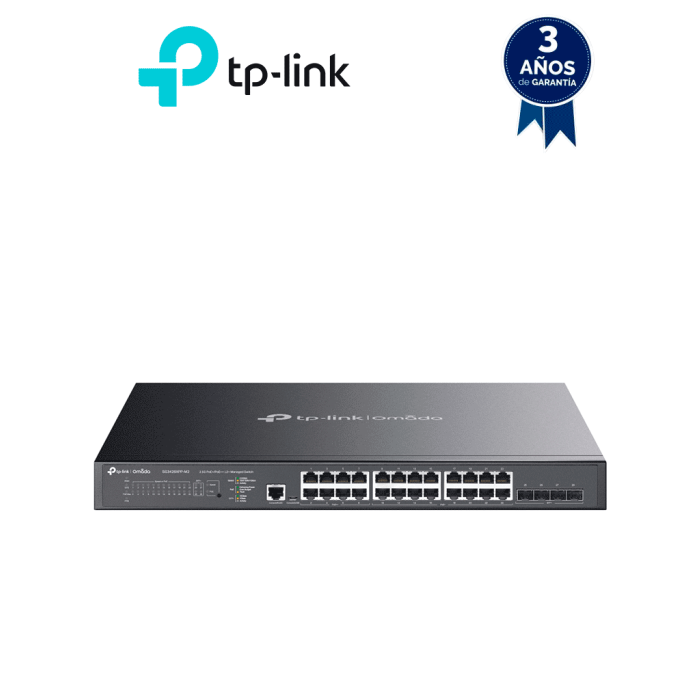 TP-LINK TL-SG3428XMP - Switch L2+ Omada PoE+ con 24 puertos PoE+ 10/100/1000 Mbps, 4 puertos SFP+ 10G y consola RJ45/microUSB, además gestión centralizada Omada/Stand-Alone, soporte Multicast IGMP, QoS y presupuesto PoE 384W, versión 3.0