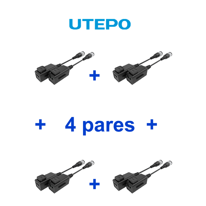 UTEPO UTP101PHD6PAK4 - 4 Pares de transceptores pasivos HD / Diseño para empalmes ordenados / Distancias CVI 720p a 300M / 1080p A 250M / 4 MP A 200M / 4K A 150M