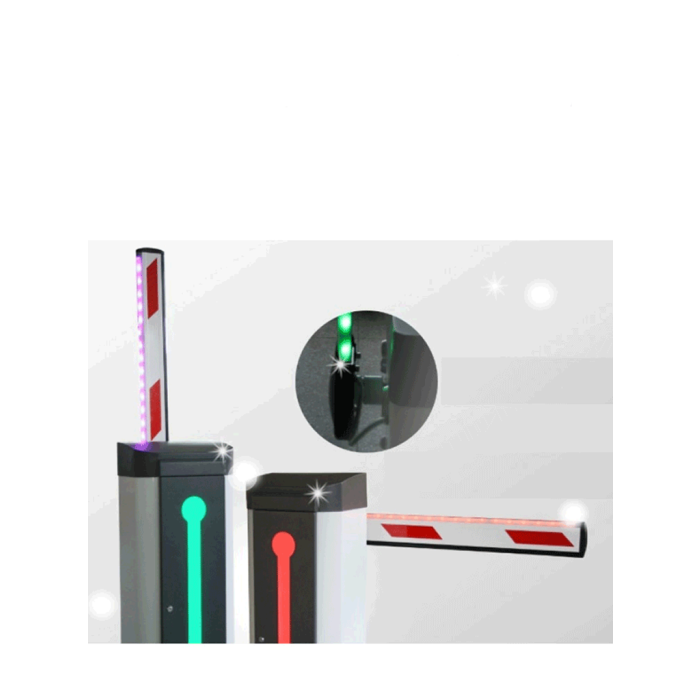 Tiene forma de tipo cuadrada; no es ovalado y cuenta con rieles para ajuste de caucho plástico protector para caso de accidentes y LED de circuito iluminado cuando esta cerrado el acceso en ROJO, y VERDE cuando se encuentra abierto el mismo.