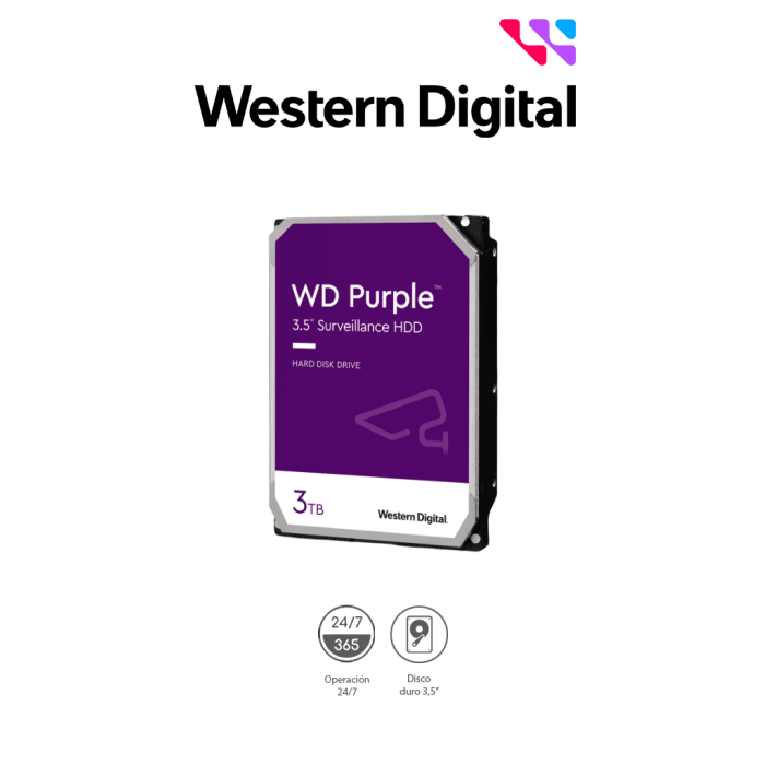 WESTERN WD33PURZ - Disco Duro de 3TB Purple/ Especial para Videovigilancia/ Trabajo 24/7/ Interface: Sata 6 Gb/s/ Hasta 64 Cámaras/ Hasta 16 Bahías de Discos Duros/ 3 Años de Garantía / 6Gb/s Anterior